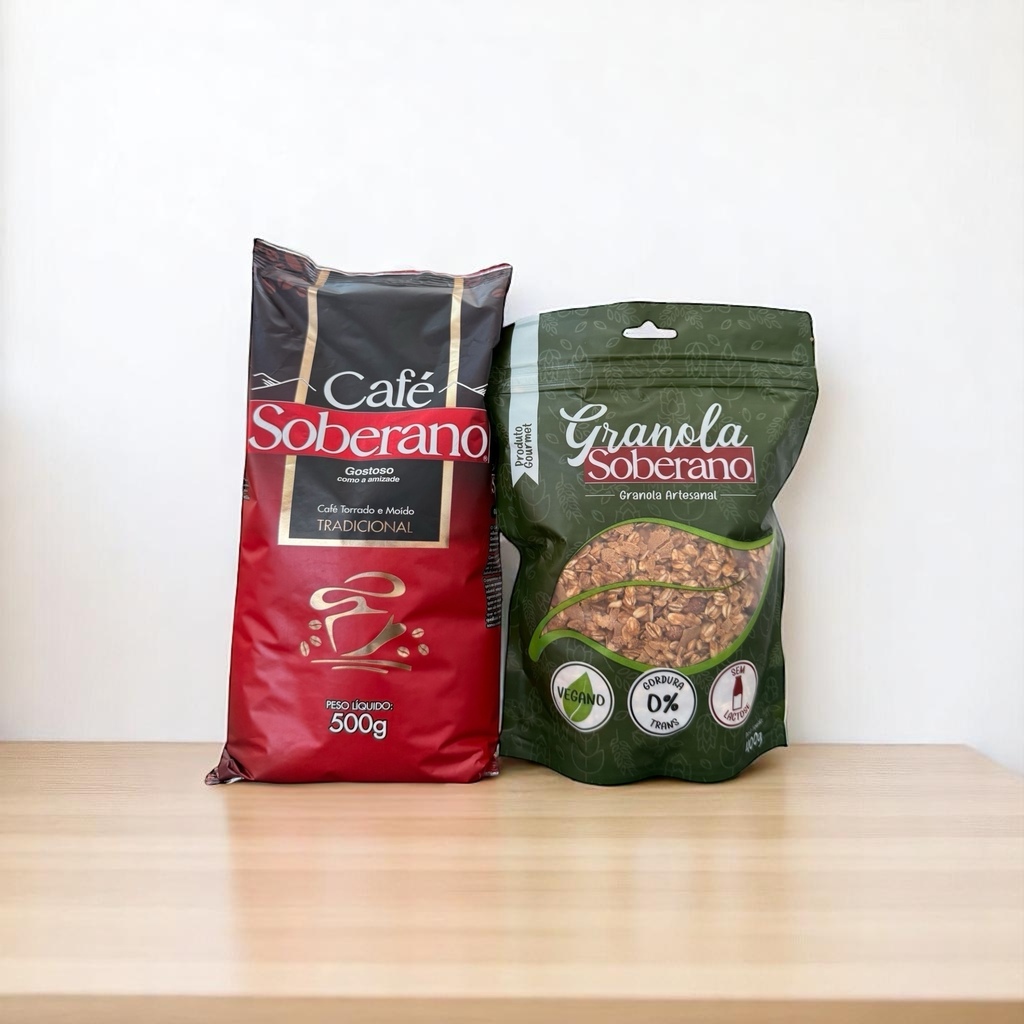 ☕Contém: 1 unidade de Café Soberano Tradicional 500g e 1 unidade de Granola Soberano 400g